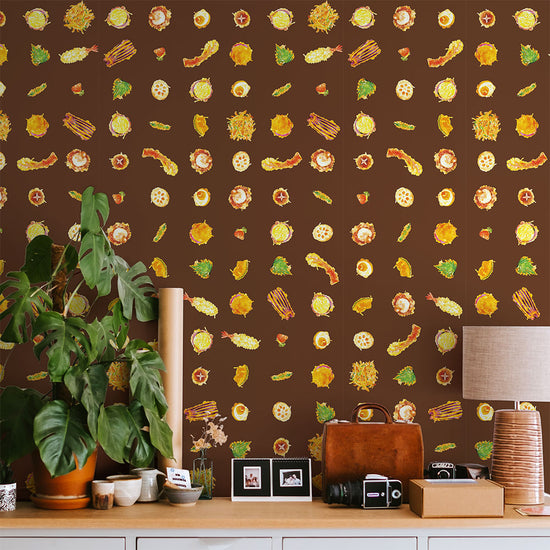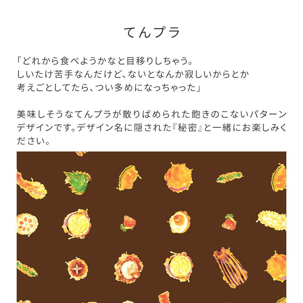 美味しそうなてんプラが散りばめられた飽きのこないパターンデザインです。