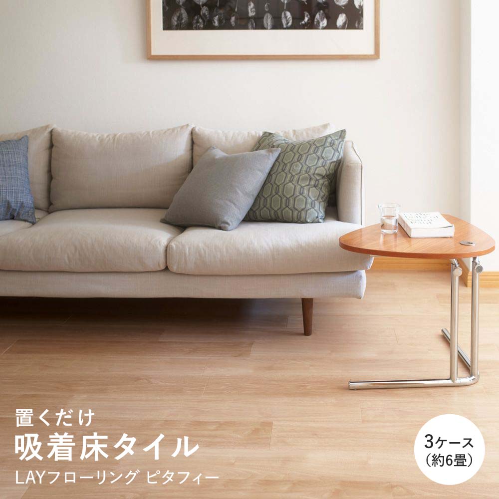 【3ケース 72枚】 約6畳 LAYフローリング ピタフィー LPF-523 ウォールナット ライトブラウン 置くだけ 吸着フロアタイル