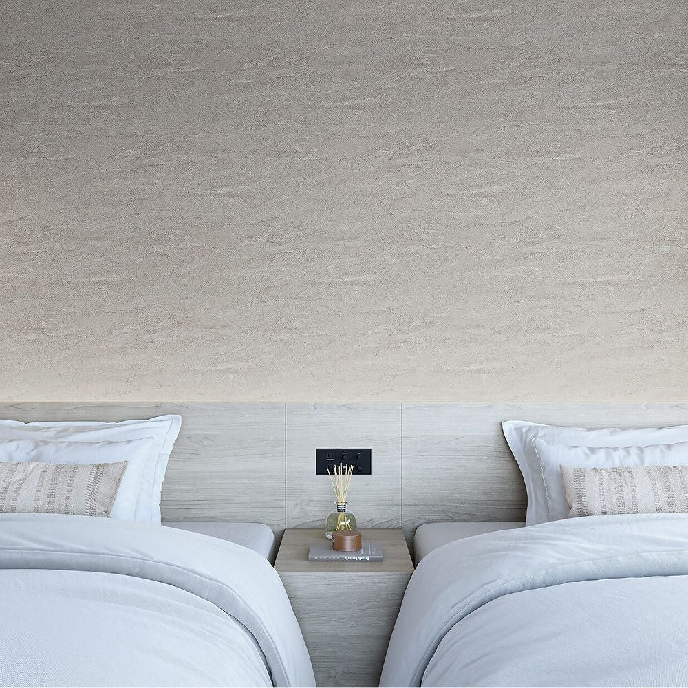 自然石の模様を、粒の質感や不規則な流れで大らかに表現したデザイン。深いグレーの色味が空間に馴染み、広がりをもたらします。