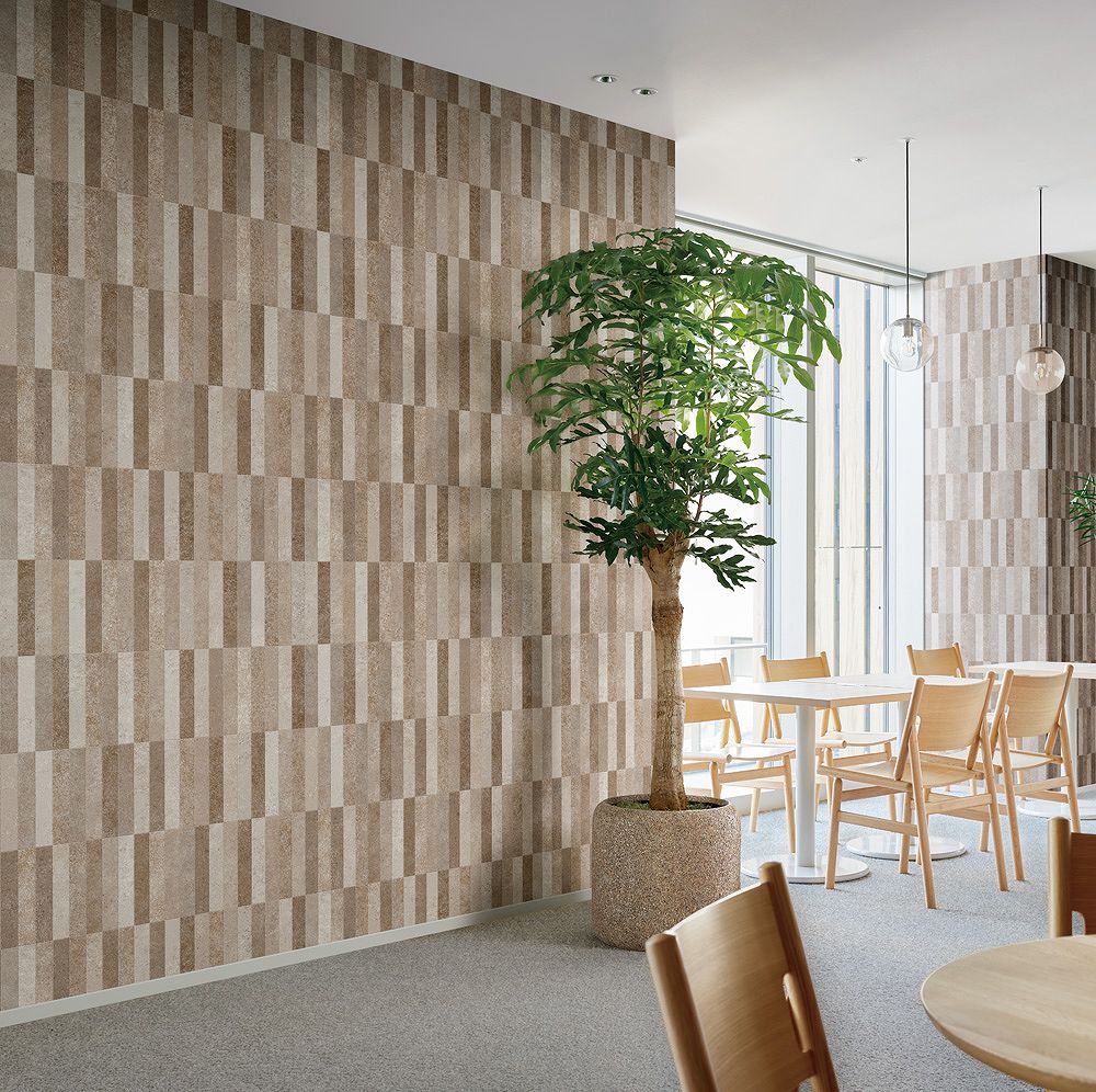 抑揚のある色味と表情をリアルに再現したデザイン。異なるタイルが空間にリズムを生みます。