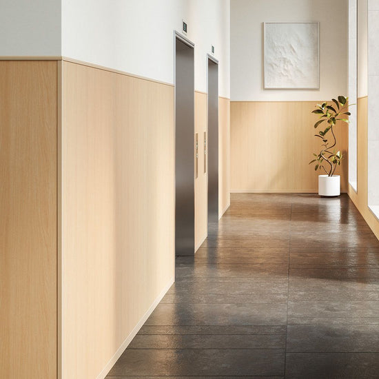 人が多く行き交う場所におすすめの、スーパーハードタイプ。馴染みよい木目のウォールナット調。
