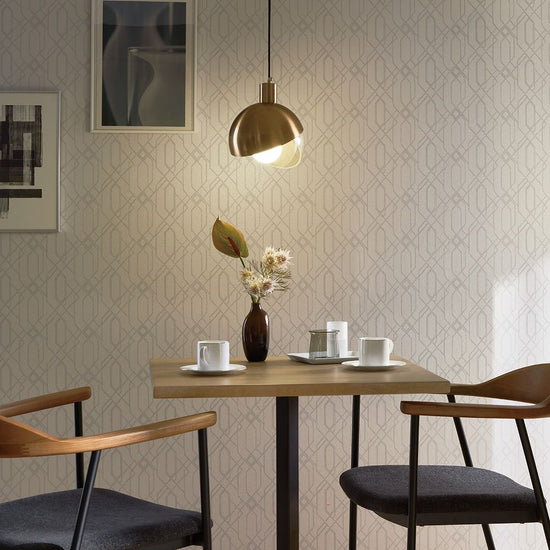 シンプルなラインの幾何学模様。ほのかに煌めく地模様と繊細なラインがリュクスな時間を演出します。