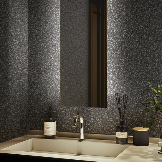 立体感のある織エンボスに小さなドットが広がる様子が、風景のように見えてくるモザイクパターン。