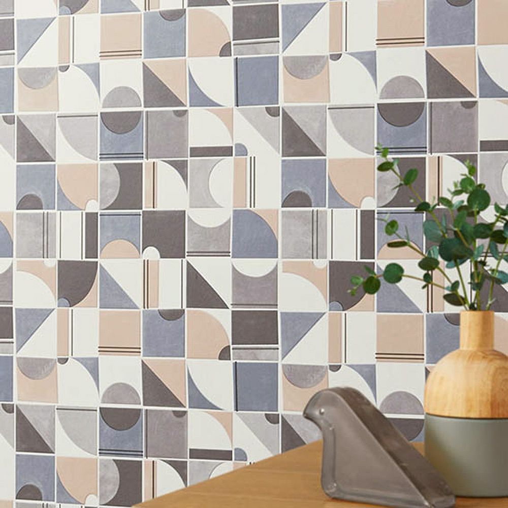 アートタイルのように模様が組み合わされた模様。ランダムな配置もどこか可愛らしいレトロな魅力に。