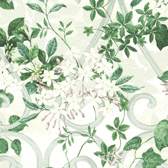 ハゴロモジャスミンが咲き乱れる庭をイメージしたデザイン。安らぎを感じさせるボタニカルな雰囲気を漂わせます。