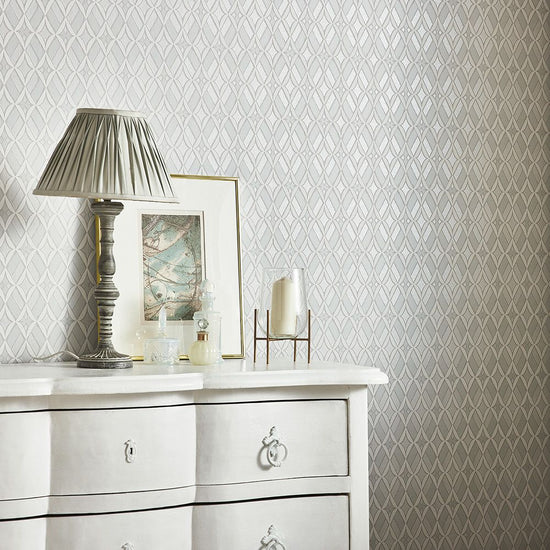 シンプルなパターンの重なりが、見る角度によって円やダイヤの連なりに見えてくる目に愉しいデザインです。