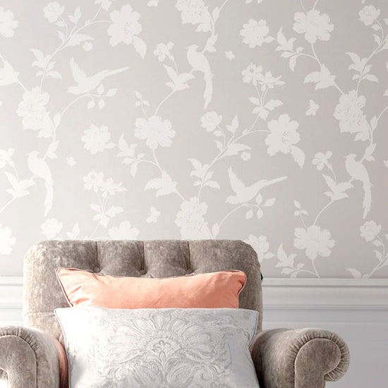 『ファーレイ』は、ローラアシュレイのアンティークファブリックからデザインされました。スケールが大きく、鳥や蝶、植物のモチーフが特徴となっています。