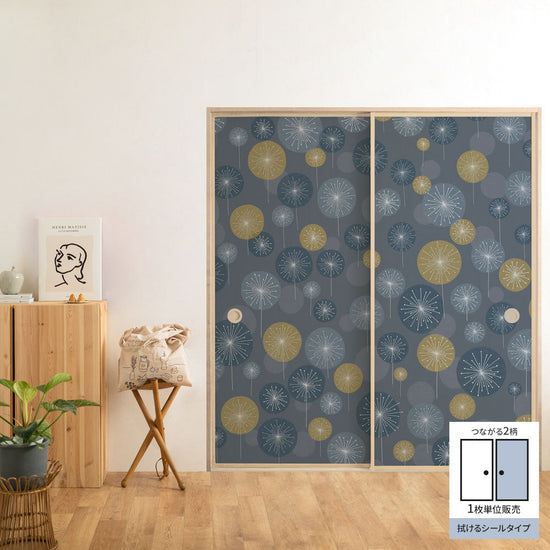 ふすまリメイクシート 拭けるシールタイプ 大正ロマン つながる2柄 花火B (約185cm×100cm)