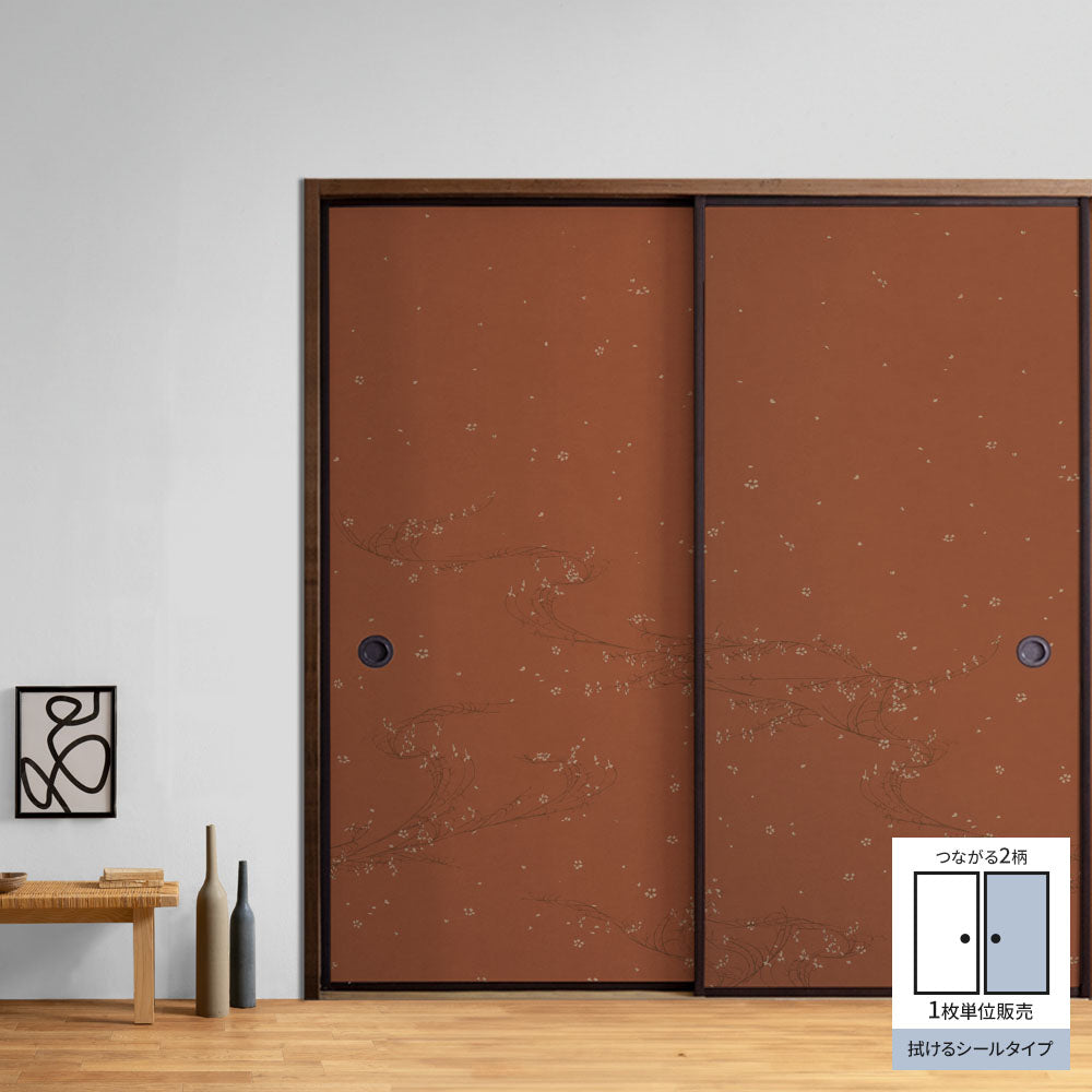 ふすまリメイクシート 拭けるシールタイプ 大正ロマン つながる2柄 小花B 煉瓦 (約185cm×100cm)