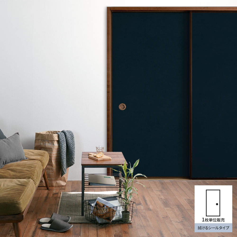 ふすまリメイクシート 拭けるシールタイプ 雲龍紙 紺色 (約185cm×100cm)