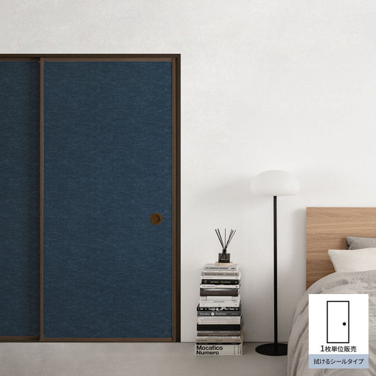 ふすまリメイクシート 拭けるシールタイプ 和柄 藍染波紋 青藍 (約185cm×100cm)