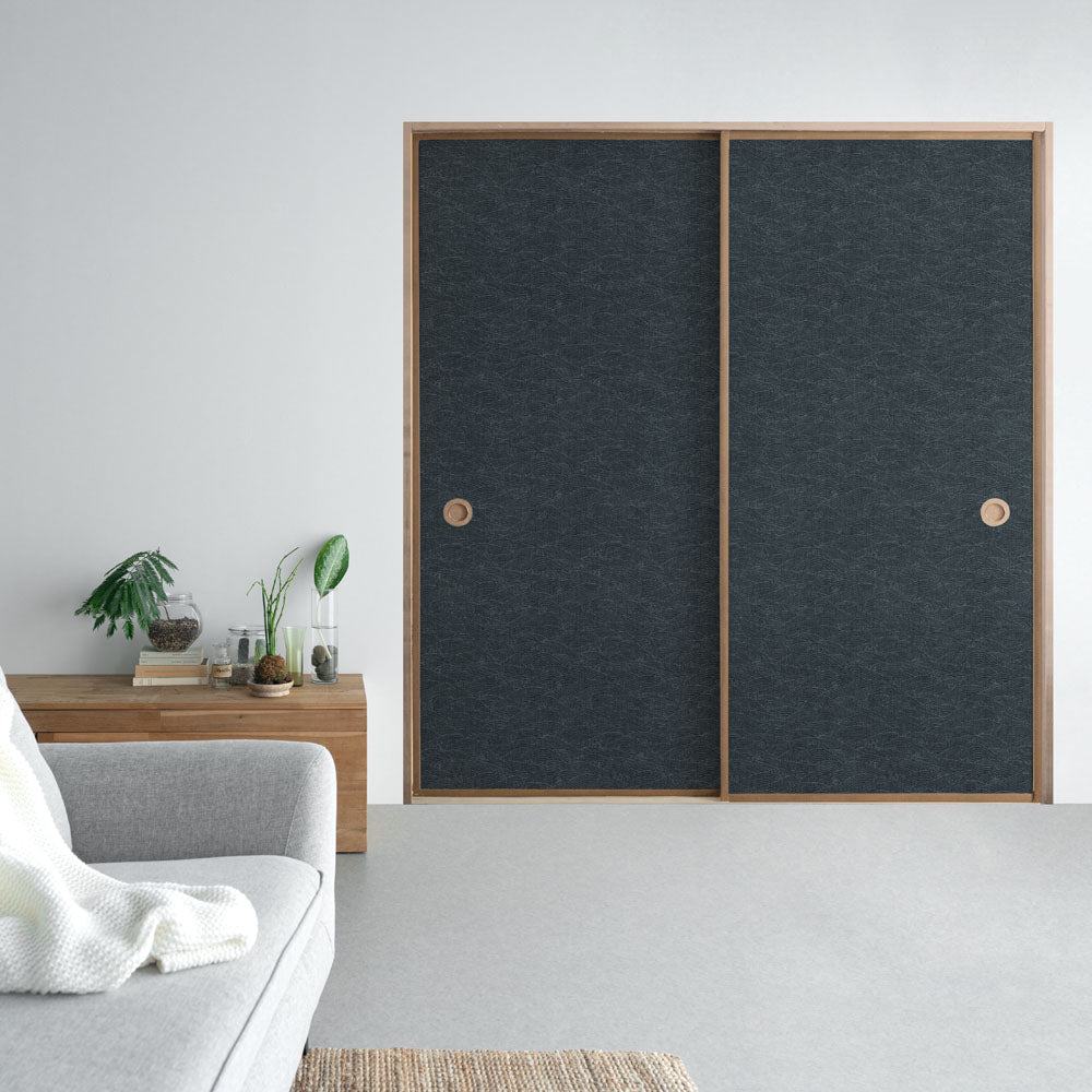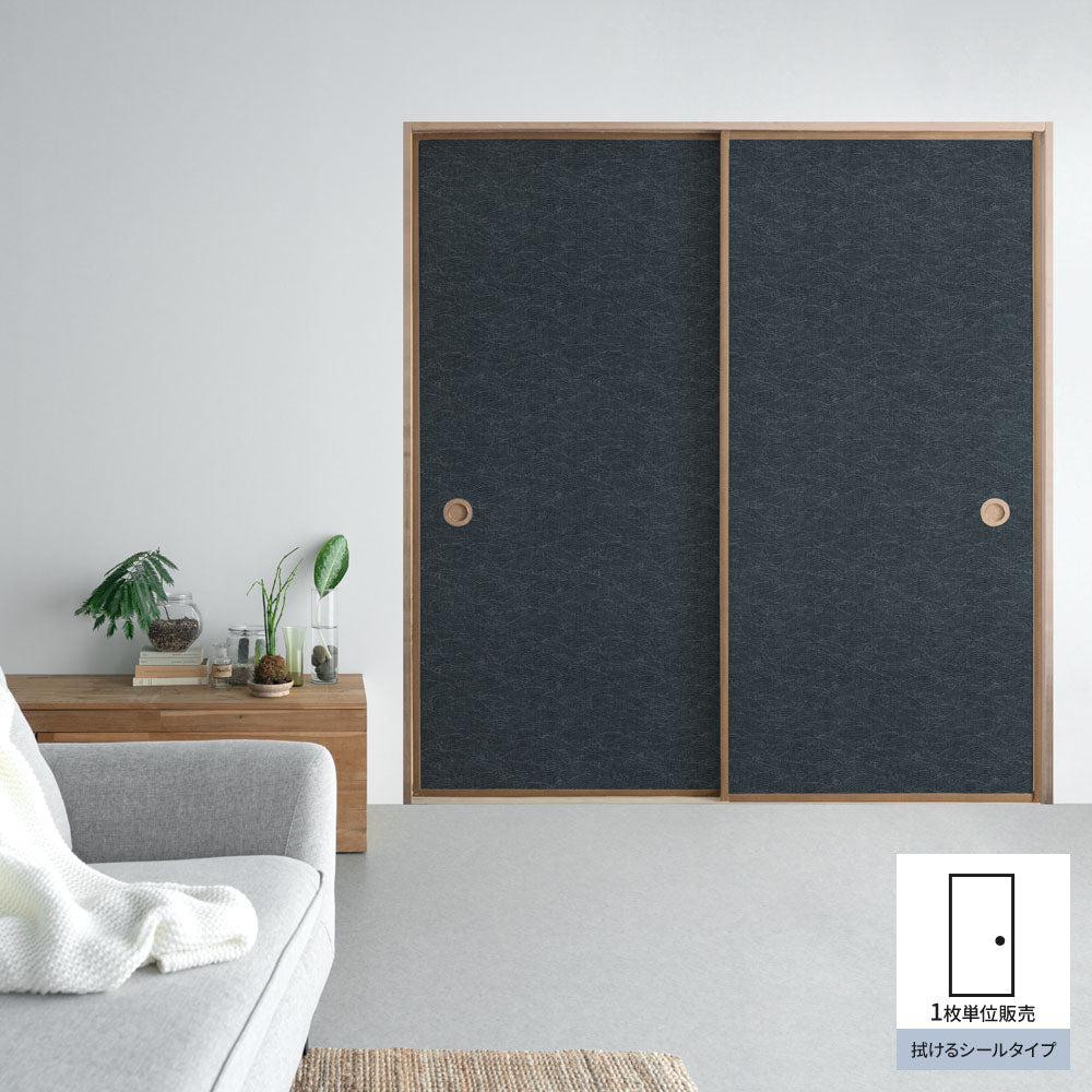 ふすまリメイクシート 拭けるシールタイプ 和柄 藍染波紋 錆鼠 (約185cm×100cm)