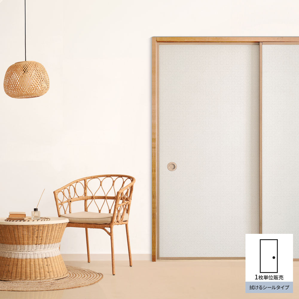 ふすまリメイクシート 拭けるシールタイプ 和柄 亀甲花菱 きなり (約185cm×100cm)
