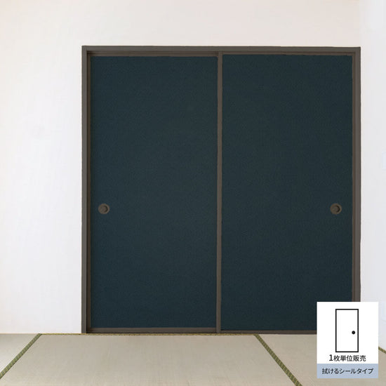 ふすまリメイクシート 拭けるシールタイプ 和柄 紗綾形 紺色 (約185cm×100cm)