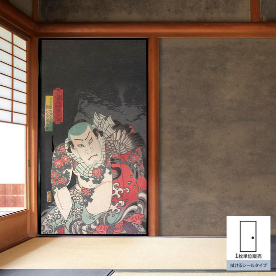 ふすまリメイクシート 拭けるシールタイプ 歌川豊国 當世好男子傳 (約185cm×100cm)