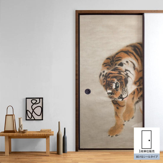 ふすまリメイクシート 拭けるシールタイプ 岸駒 虎 (約185cm×100cm)