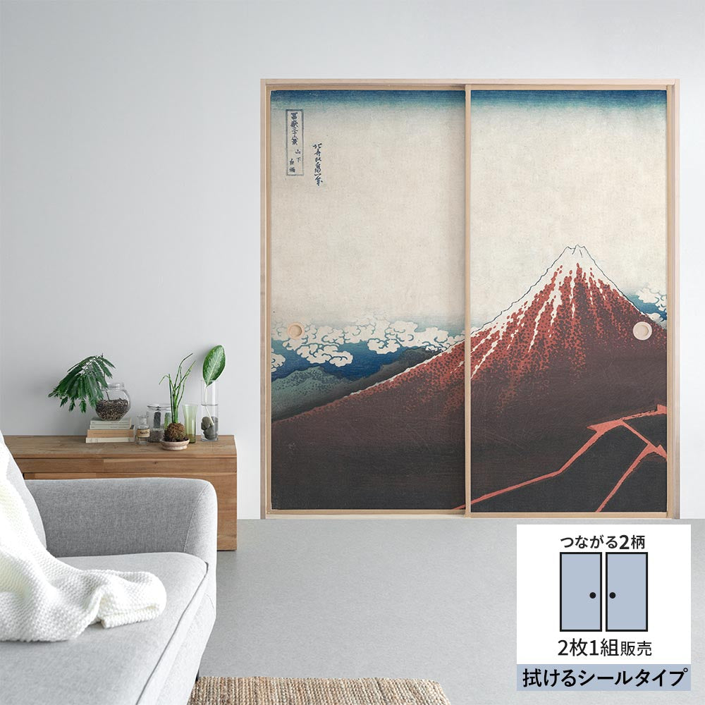 【2枚1組】ふすまリメイクシート 拭けるシールタイプ つながる2柄 葛飾北斎 三下の白雨