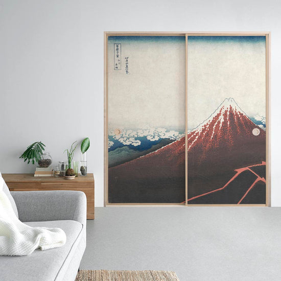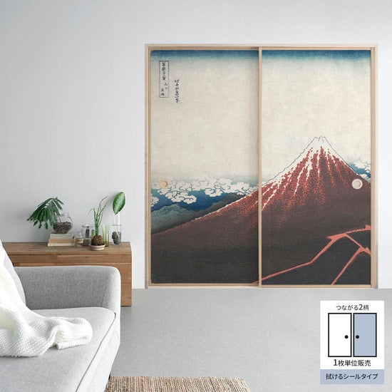 ふすまリメイクシート 拭けるシールタイプ つながる2柄 葛飾北斎 三下の白雨 B (約185cm×100cm)