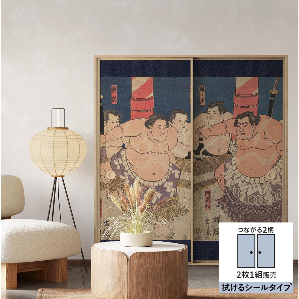 【2枚1組】ふすまリメイクシート 拭けるシールタイプ つながる2柄 歌川国貞 稲妻 雷五郎 / 阿武松 緑之助
