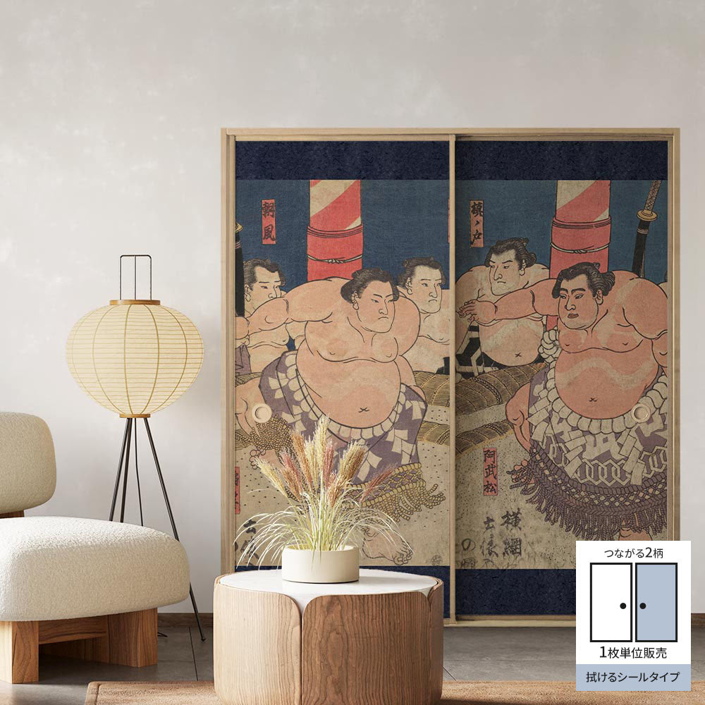 ふすまリメイクシート 拭けるシールタイプ つながる2柄 歌川国貞 阿武松 緑之助 (約185cm×100cm)