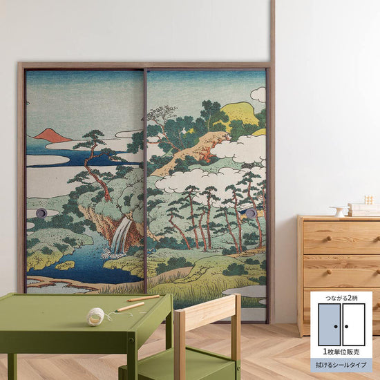 ふすまリメイクシート 拭けるシールタイプ つながる2柄 葛飾北斎 城嶽霊泉 A (約185cm×100cm)