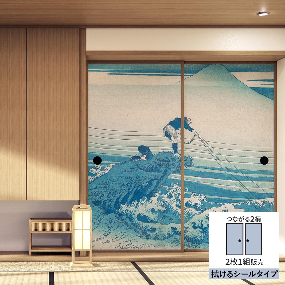 【2枚1組】ふすまリメイクシート 拭けるシールタイプ つながる2柄 葛飾北斎 甲州石班沢