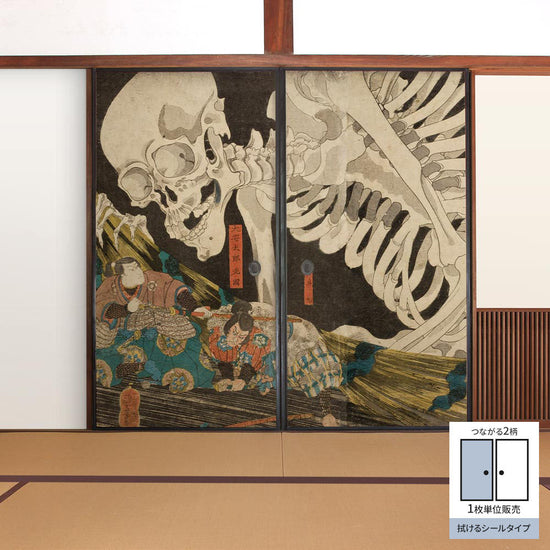 ふすまリメイクシート 拭けるシールタイプ つながる2柄 歌川国芳 相馬の古内裏 A (約185cm×100cm)