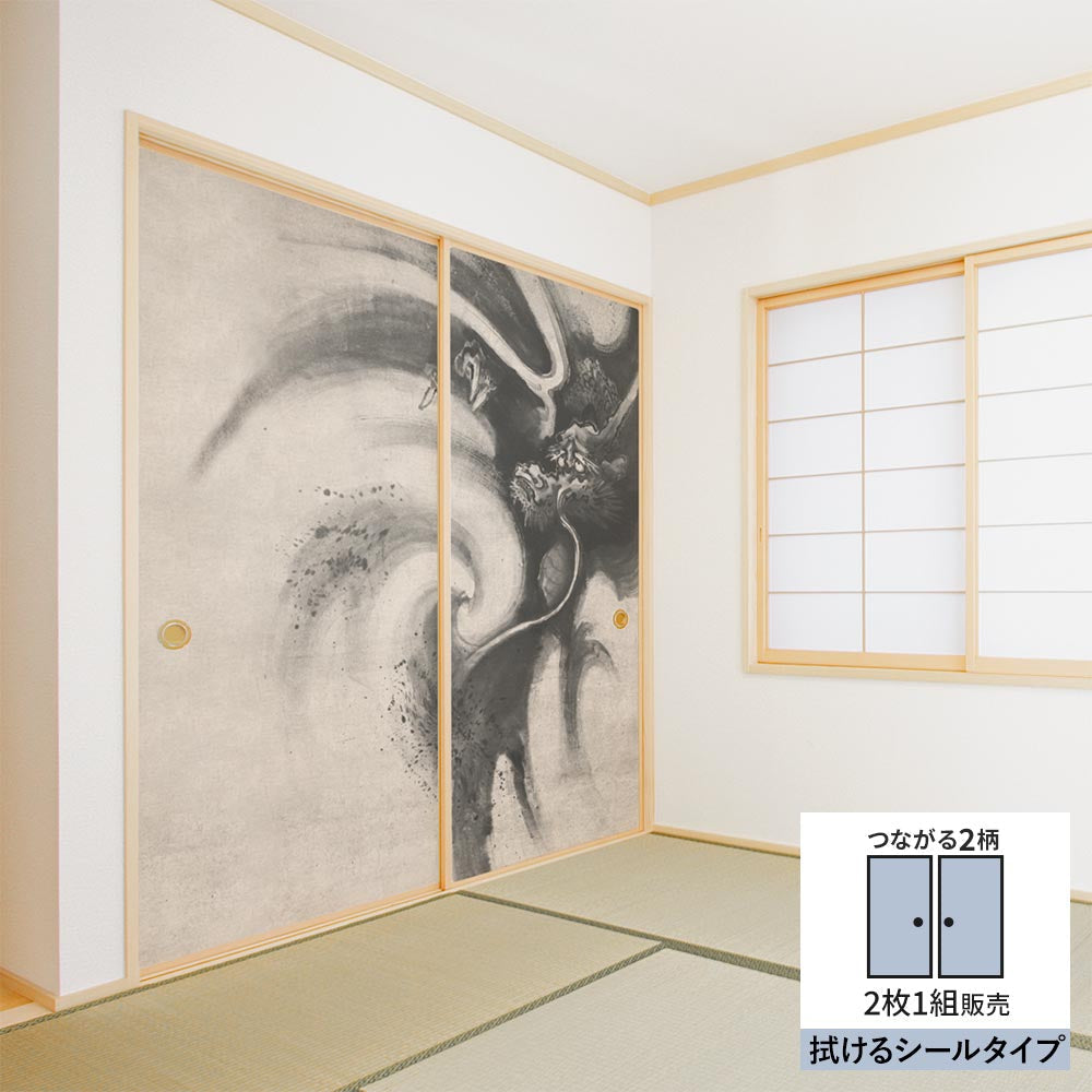 【2枚1組】ふすまリメイクシート 拭けるシールタイプ つながる2柄 狩野山雪 龍図