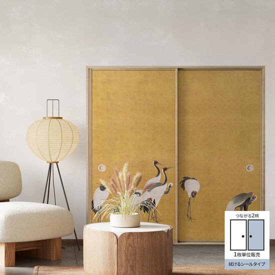ふすまリメイクシート 拭けるシールタイプ つながる2柄 円山応挙 群鶴図屏風 B (約185cm×100cm)