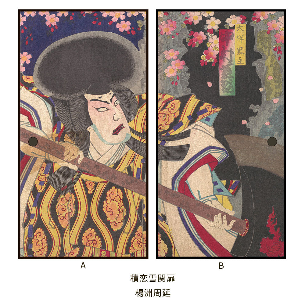 【2枚1組】ふすまリメイクシート 拭けるシールタイプ つながる2柄 楊洲周延 積恋雪関扉