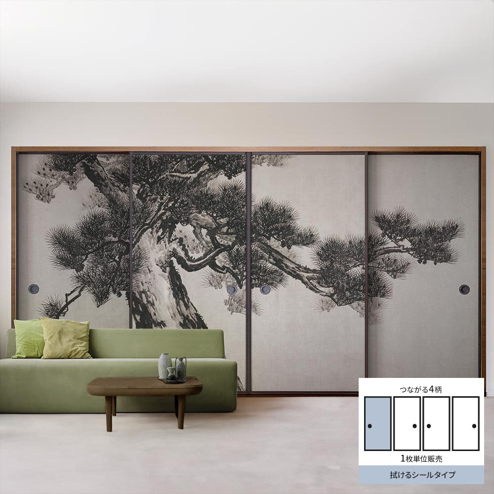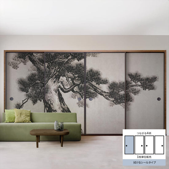 ふすまリメイクシート 拭けるシールタイプ つながる4柄 鈴木松年 老松図屏風 A (約185cm×100cm)