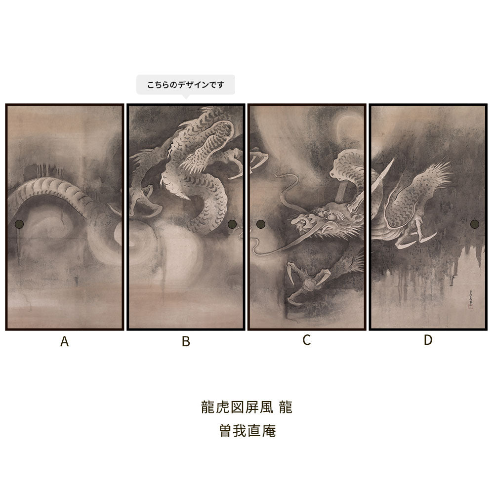 ふすまリメイクシート 拭けるシールタイプ つながる4柄 曽我直庵 龍虎図屏風 龍 B (約185cm×100cm)
