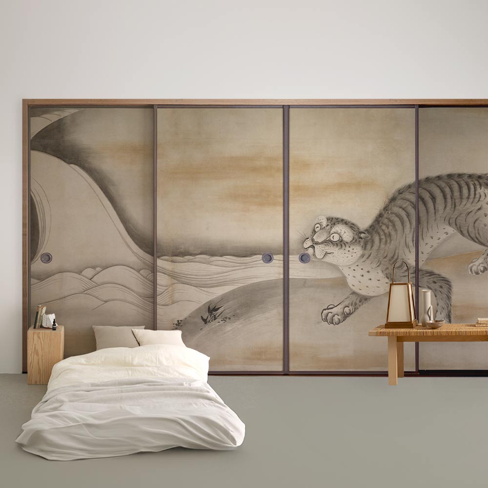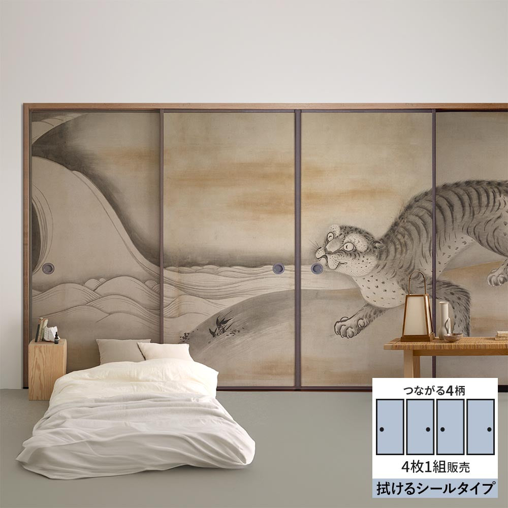 【4枚1組】ふすまリメイクシート 拭けるシールタイプ つながる4柄 曽我直庵 龍虎図屏風 虎