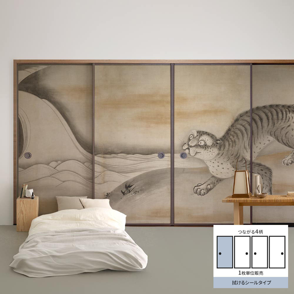 ふすまリメイクシート 拭けるシールタイプ つながる4柄 曽我直庵 龍虎図屏風 虎 A (約185cm×100cm)