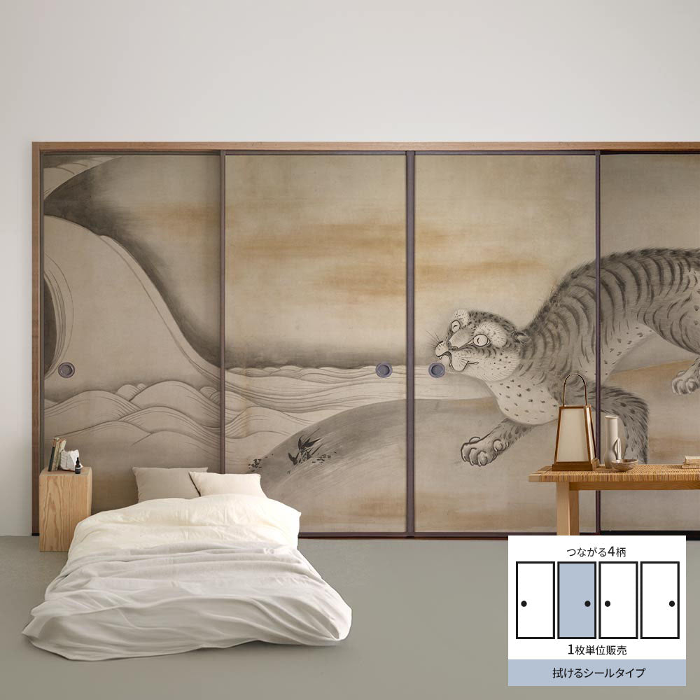 ふすまリメイクシート 拭けるシールタイプ つながる4柄 曽我直庵 龍虎図屏風 虎 B (約185cm×100cm)