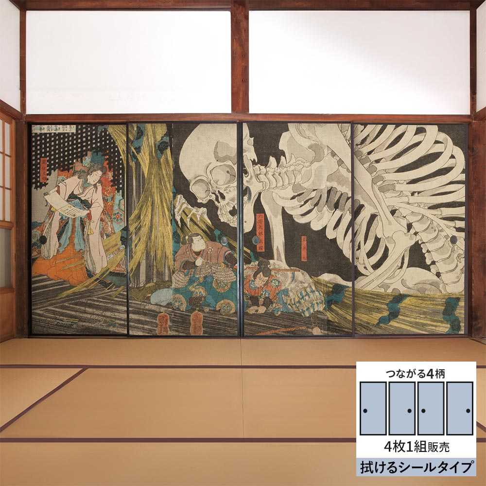 【4枚1組】ふすまリメイクシート 拭けるシールタイプ つながる4柄 歌川国芳 相馬の古内裏