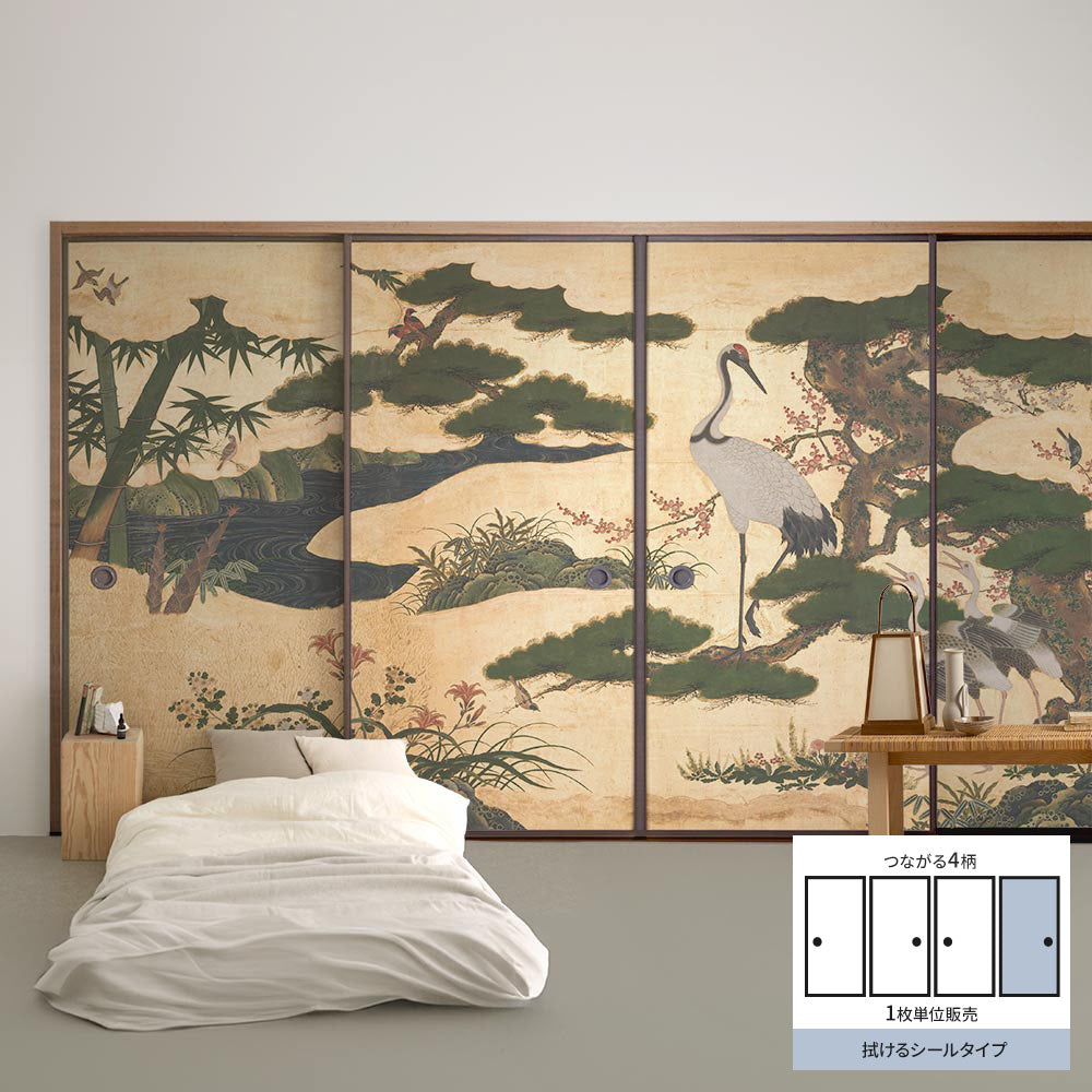 ふすまリメイクシート 拭けるシールタイプ つながる4柄 四季花鳥図屏風 D (約185cm×100cm)