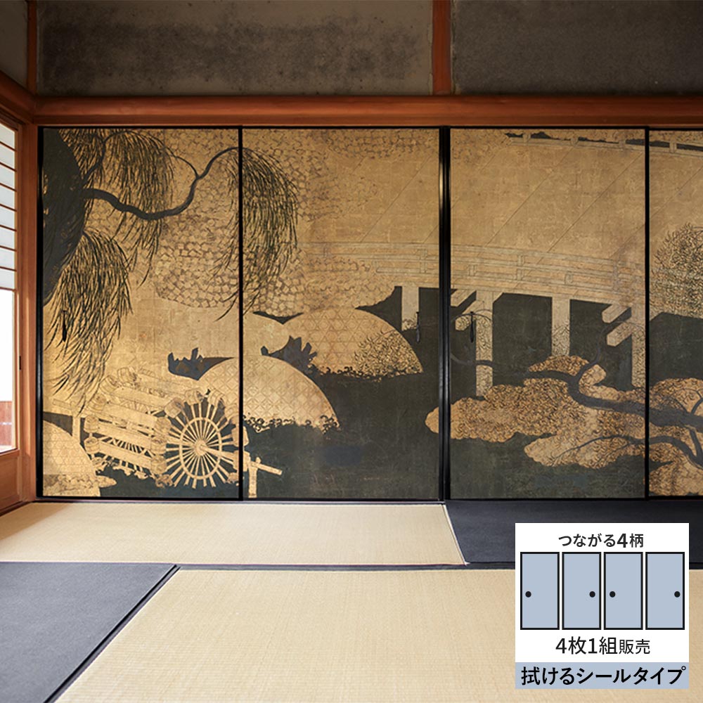 【4枚1組】ふすまリメイクシート 拭けるシールタイプ つながる4柄 長谷川等伯 柳橋水車図屏風