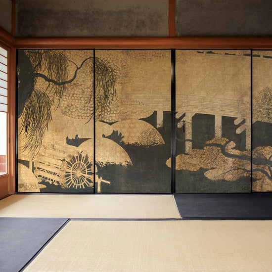 ふすまリメイクシート 拭けるシールタイプ つながる4柄 長谷川等伯 柳橋水車図屏風 C (約185cm×100cm)