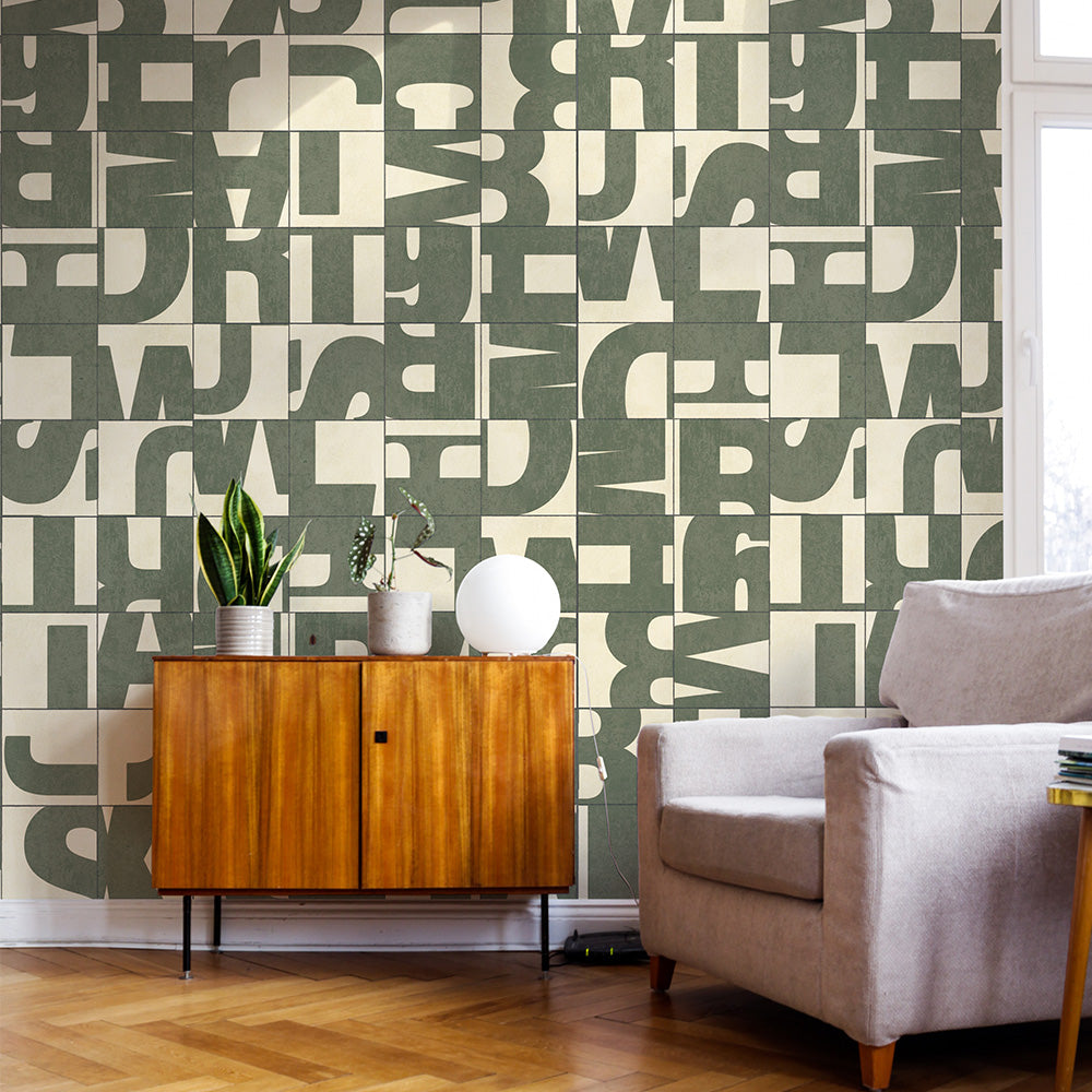 水だけで貼れる壁紙 Hattan ハッタン WALLN レターブロック カーキ HLB-03 6枚セット