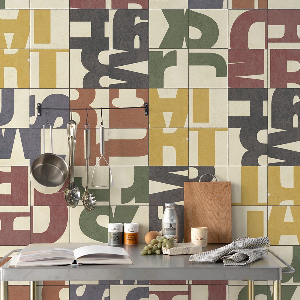 水だけで貼れる壁紙 Hattan ハッタン WALLN レターブロック ミックス HLB-07 6枚セット
