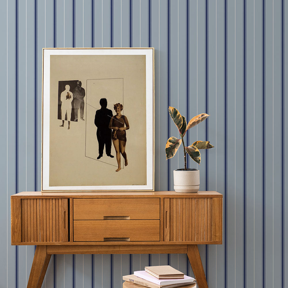 はがせる壁紙 のりなしタイプ アイビーストライプC (49cm×2.5mサイズ) NKH-ASC01 ブルー