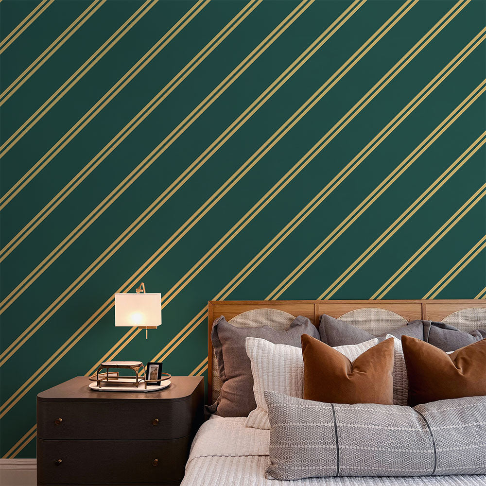 はがせる壁紙 のりなしタイプ アイビーストライプF (49cm×2.5mサイズ) NKH-ASF01 エバーグリーン×イエロー