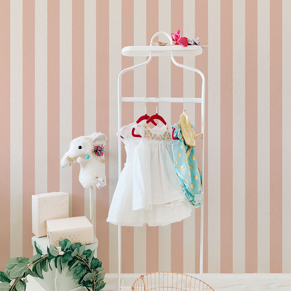 はがせる壁紙 のりなしタイプ キャンディストライプA (49cm×3mサイズ) NKH-CSA04 くすみピンク