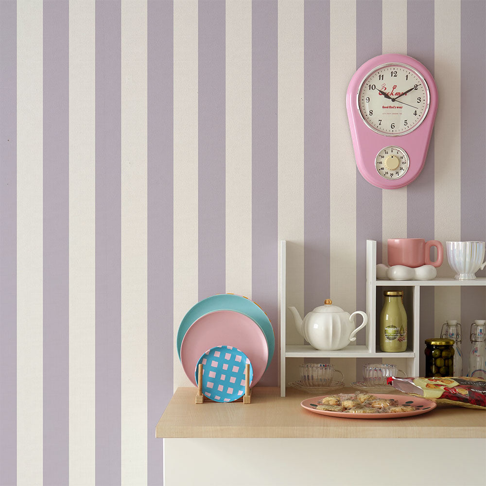 はがせる壁紙 のりなしタイプ キャンディストライプA (49cm×3mサイズ) NKH-CSA05 くすみパープル