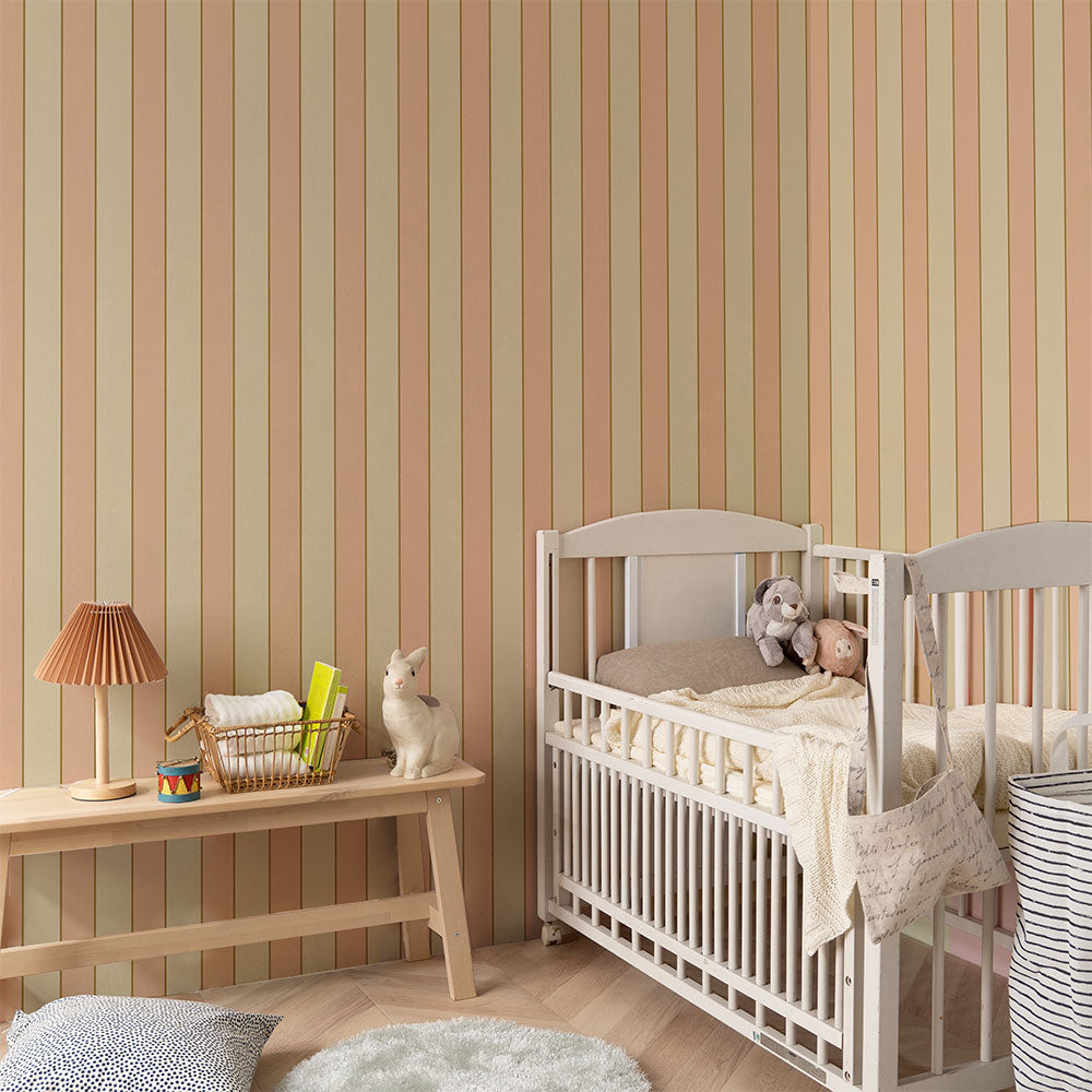 はがせる壁紙 のりなしタイプ キャンディストライプB (49cm×3mサイズ) NKH-CSB01 コーラルピンク