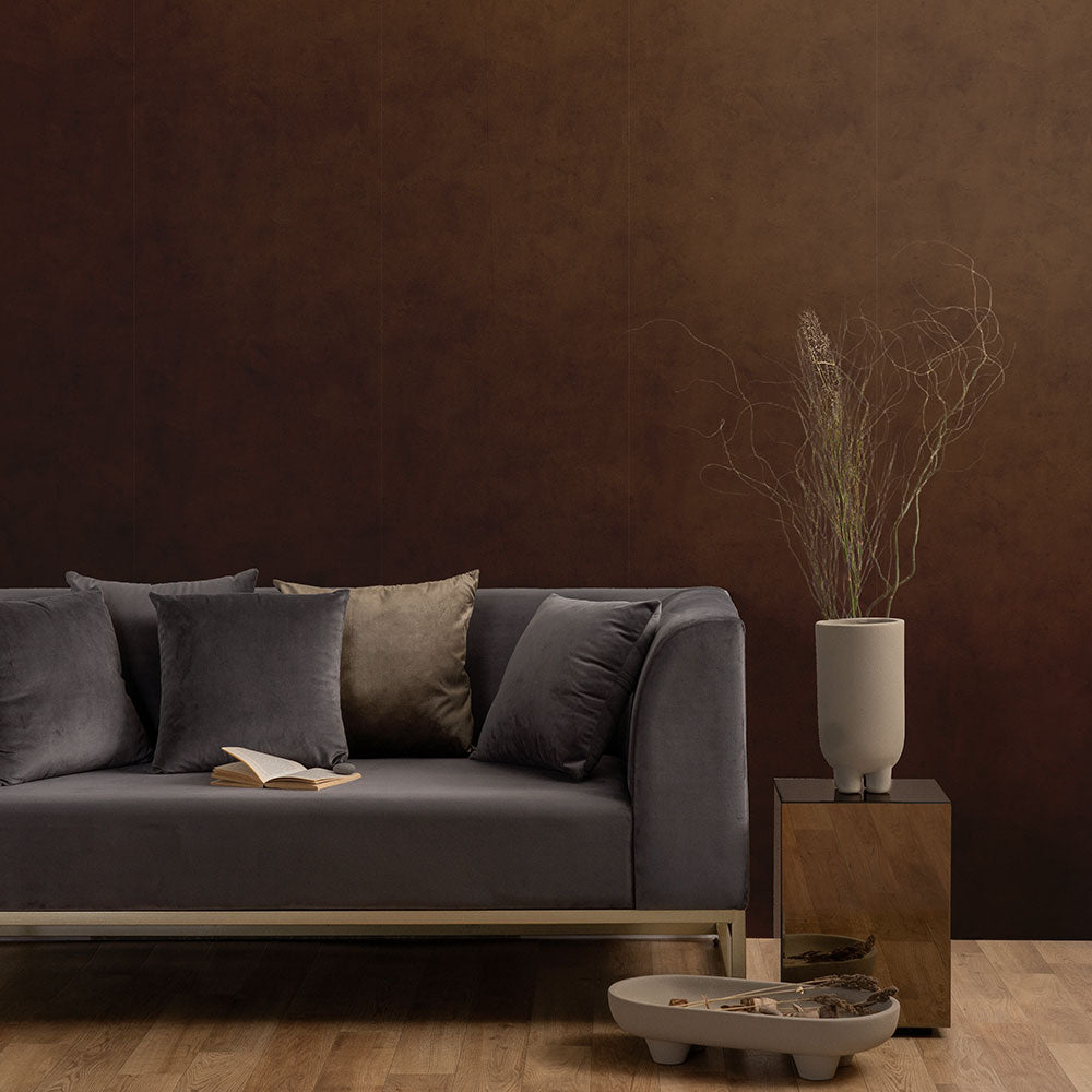 ざっくりとした塗り壁風のデザインに海外インテリアみたいな深みのあるカラーを載せました。