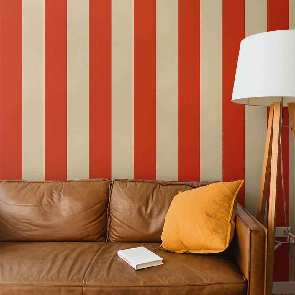 はがせる壁紙 のりなしタイプ ロンドンストライプW2 (49cm×2.5mサイズ) NKH-LS209 レッド×ベージュ
