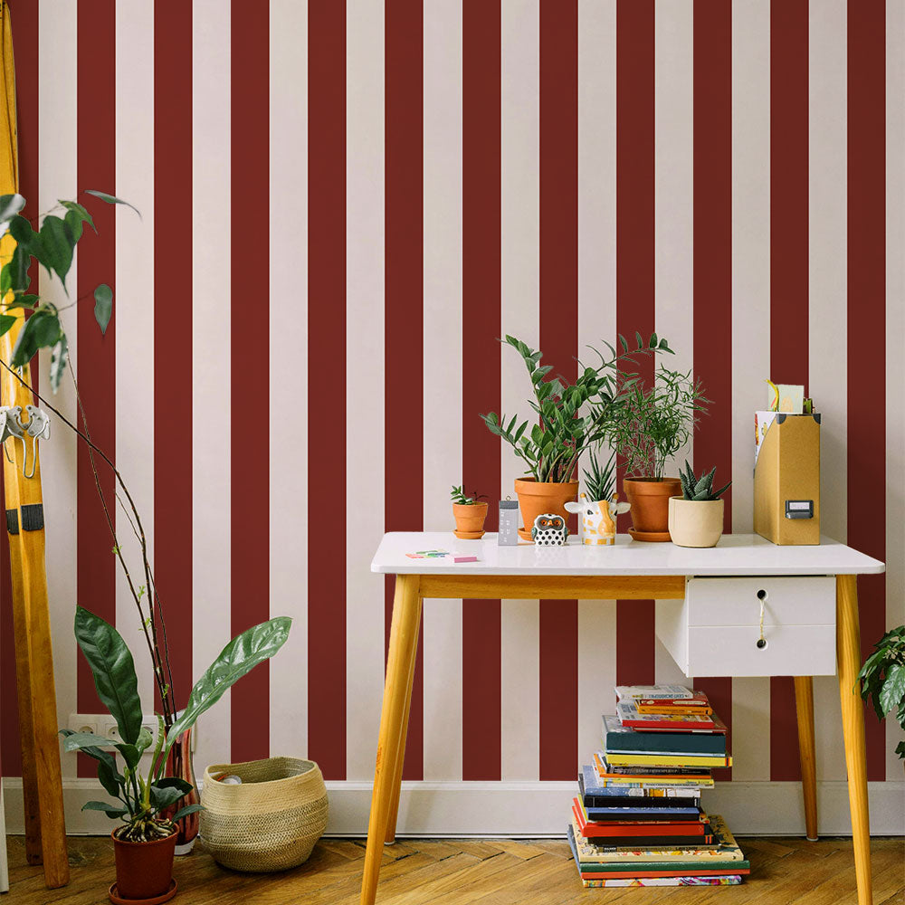 はがせる壁紙 のりなしタイプ ロンドンストライプW3 (49cm×2.5mサイズ) NKH-LS304 バーガンディ