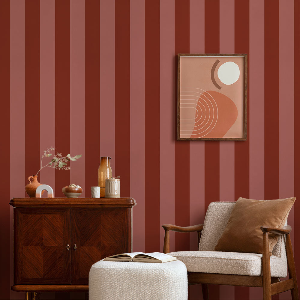 はがせる壁紙 のりなしタイプ ロンドンストライプW3 (49cm×3mサイズ) NKH-LS310 レッド×チェリー